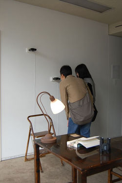 In an installation utilizing the second floor office of the French Embassy the artist re-enacted the work ‘38 garden’ produced earlier in 2008 in Korea, upon the theme of ‘a place which belongs to no one’. While taking the same concept this work took the form of a completely different installation. The door to the embassy office was replaced with a wooden door based on the door to the forbidden garden, as appears in the novel ‘The Secret Garden’. Set around the room are a series of binoculars, through which the moving image of a thick forest can be seen, with scenes of trees shaking in the wind, small birds which live amongst the trees, and insects upon the grass and leaves. As the viewer peers through the binoculars, they are brought to a sensation of standing in the middle of a forest. Upon the desk is set the novel ‘The Secret Garden’, but as this is opened what appears is ‘the diary of a Korean Japanese resident who made her way to the 38 parallel in the Summer of 2007’.