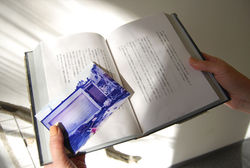 The story “A curtain on a bay window” and a installation related to it. The story is about one scene of the Great Hanshin-Awaji Earthquake of 1995 written with a personal point of view, just like someone's everyday life. From a burnt bay window, a lace curtain which must have burnt spreads and flows up into the sky.A lot of rubble are scattered and four books are buried in them.If you open the book, you can see a picture of a house collapsed and burnt and usual life of a family just after the earthquake. Words of a woman which is the beginning part of the story are written on the outer wall of the museum. The work humorously depicts the strength of people who have lived through the “extraordinary” as part of their daily lives.